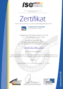 Das Ziel für uns ist eine umfassende und nachhaltige Verbesserung der Qualität unserer Dienstleistungen. Besonderen Fokus legen wir hier auf unsere Beratungs- und Dienstleistungskompetenz, die wir partnerschaftlich zum Kunden bringen. Diesen hohen Anspruch gewährleisten wir unter anderem durch konsequente Aus- und Weiterbildung unserer zertifizierten Mitarbeiter. Die ISO 9001-Zertifizierung nach internationalen Standards bestätigt uns dies in unserer Arbeit.